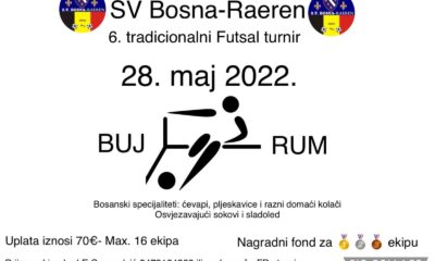 27 Aprila, 2022SV Bosna – Raeren organizujem šesti po redu tradicionalni fudbalski/ nogometni turnir . Prijava ekipa kod...